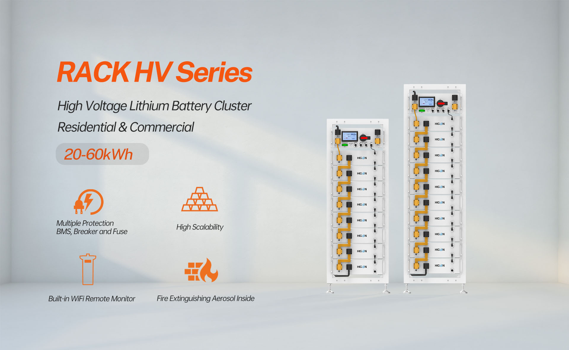 RACK HV Es un módulo de batería LiFePO4 integrado de alto rendimiento, diseñado para una instalación rápida y un mantenimiento sencillo. Con mecanismos de seguridad avanzados, un sistema inteligente de gestión de baterías (BMS) y un diseño ecológico, es la opción ideal para sistemas de respaldo de energía y almacenamiento de energía renovable. RACK HV ofrece una solución fiable y eficiente para sistemas de almacenamiento de energía (ESS) comerciales e industriales a pequeña escala. Diseñado para ofrecer rendimiento y fiabilidad, este sistema de baterías de vanguardia satisface diversas necesidades de gestión de energía, a la vez que facilita soluciones energéticas sostenibles.