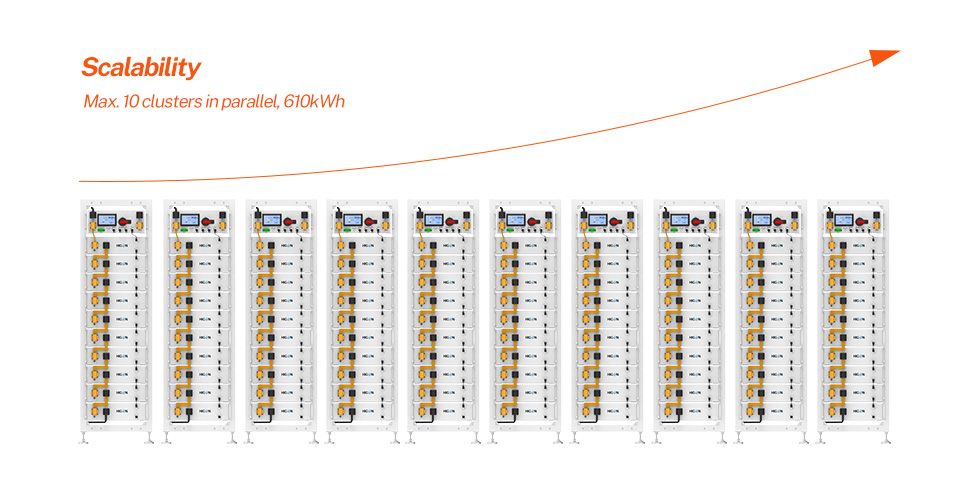 Configuración flexible: El sistema puede soportar múltiples racks, con hasta 12 módulos de batería en serie, ofreciendo escalabilidad para satisfacer sus crecientes necesidades energéticas.