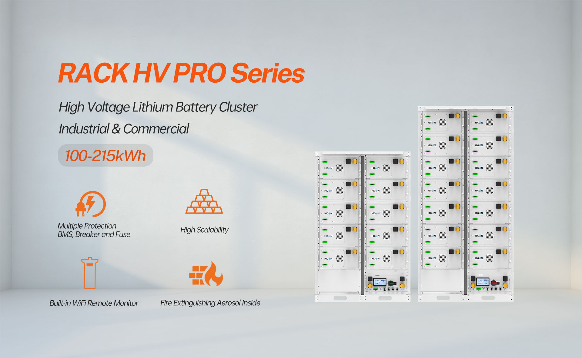 RACK HV PRO Es un módulo de batería LiFePO4 integrado de alto rendimiento, diseñado para una instalación rápida y un mantenimiento sencillo. Con mecanismos de seguridad avanzados, un sistema inteligente de gestión de baterías (BMS) y un diseño ecológico, es la opción ideal para sistemas de respaldo de energía y almacenamiento de energía renovable. RACK HV PRO ofrece una solución fiable y eficiente para sistemas de almacenamiento de energía (ESS) comerciales e industriales a pequeña escala. Diseñado para ofrecer rendimiento y fiabilidad, este sistema de baterías de vanguardia satisface diversas necesidades de gestión de energía, a la vez que facilita soluciones energéticas sostenibles.